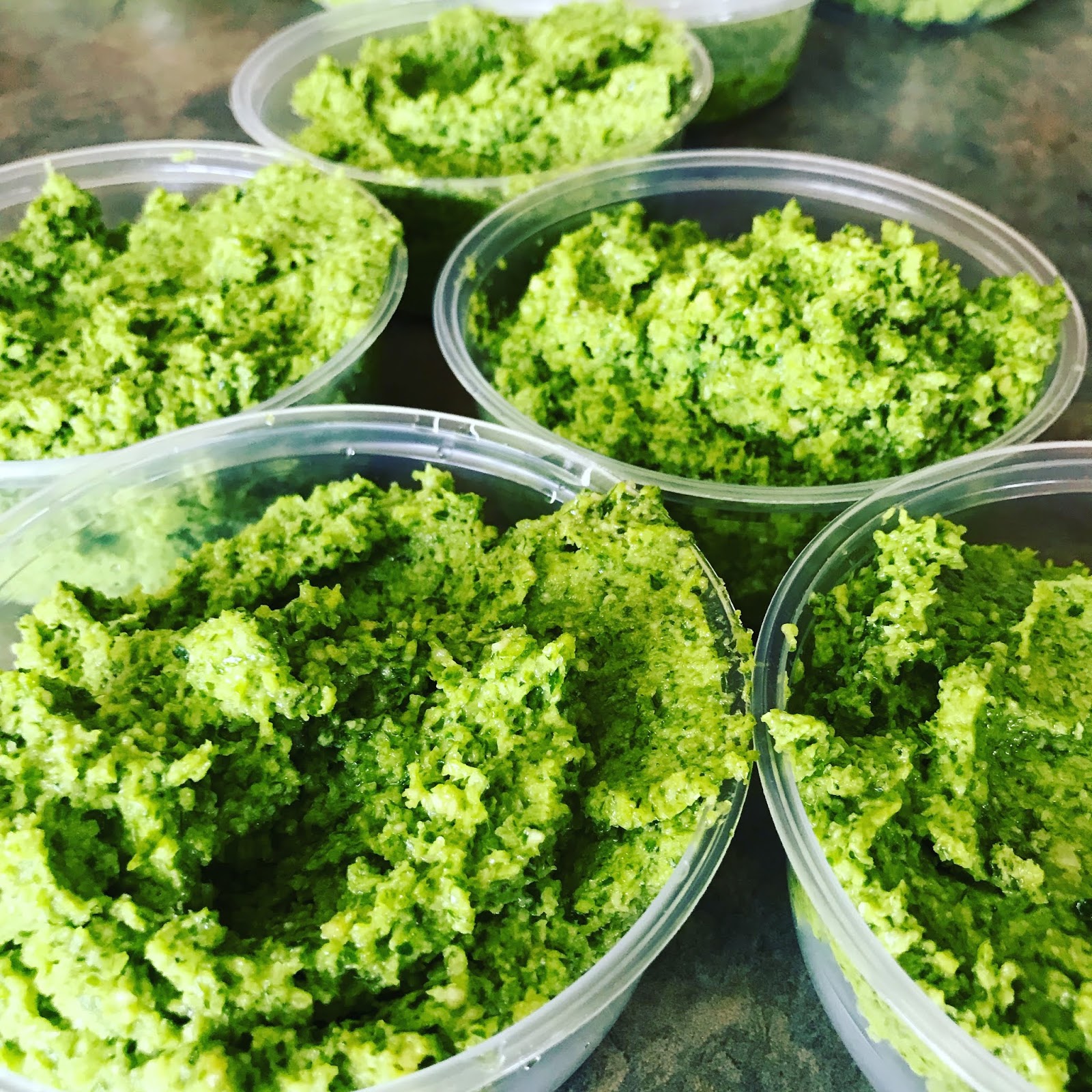 It's delicious as the base for pasta salad, on warm pasta, in garlic dips, added to artichoke dip (Maggie's favourite) or even spread on bread and toasted as an appetizer. We also love it on top of chicken pieces that are then roasted in the oven with chopped or grape tomatoes - yum!